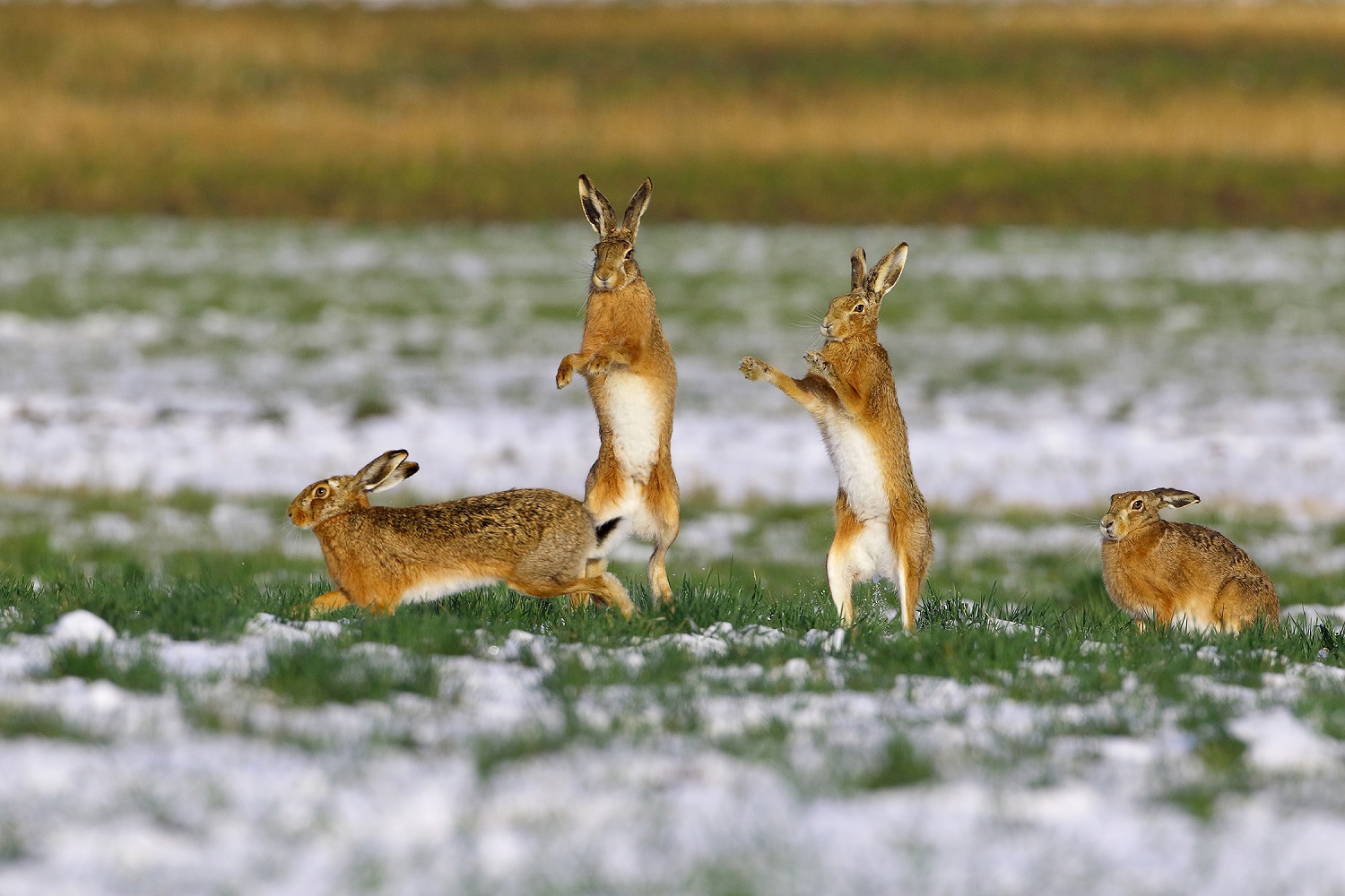 To impress a female, the male hare must put his strength and stamina to the test in what are often spectacular boxing matches and races. In the past, this was a common sight in early spring, but today it is rarely seen. The populations of brown hares in Germany are falling, mainly because of more intensive agricultural practices. There are just not enough hiding places and food for the hare.