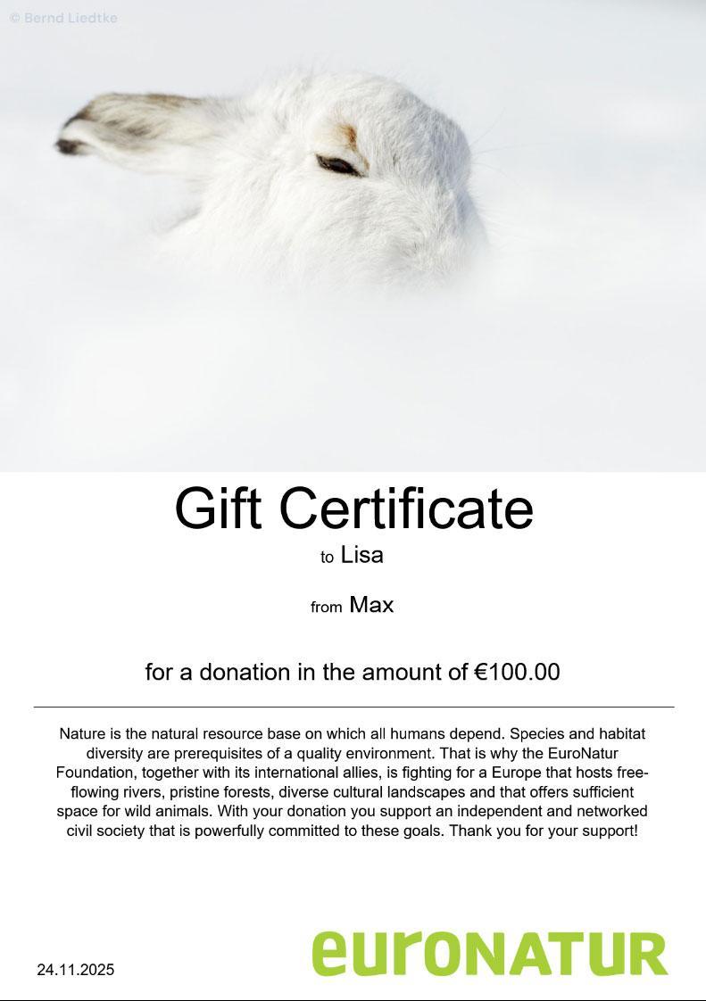 Crowded shops, stressed people, commercialism? You can avoid this! Get the better of the pre-holiday stress and make a gift donation to support Europe's nature! Bears, lynxes, birds, forests or rivers - there's something for everyone. Not only will you make someone happy, but you will also help to permanently protect endangered animal species and their habitats in Europe.