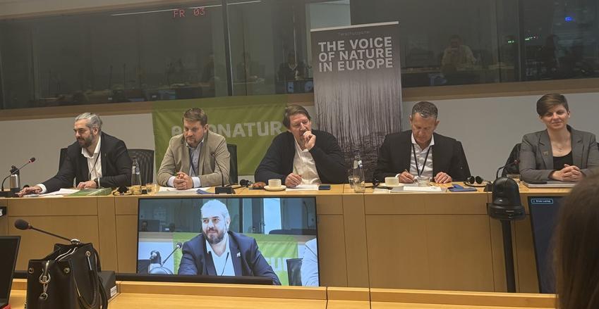 “Monitoring the accession process as a watchdog”: EuroNatur employees and EU parliamentarians at a joint event on the Balkan lynx in September 2025.