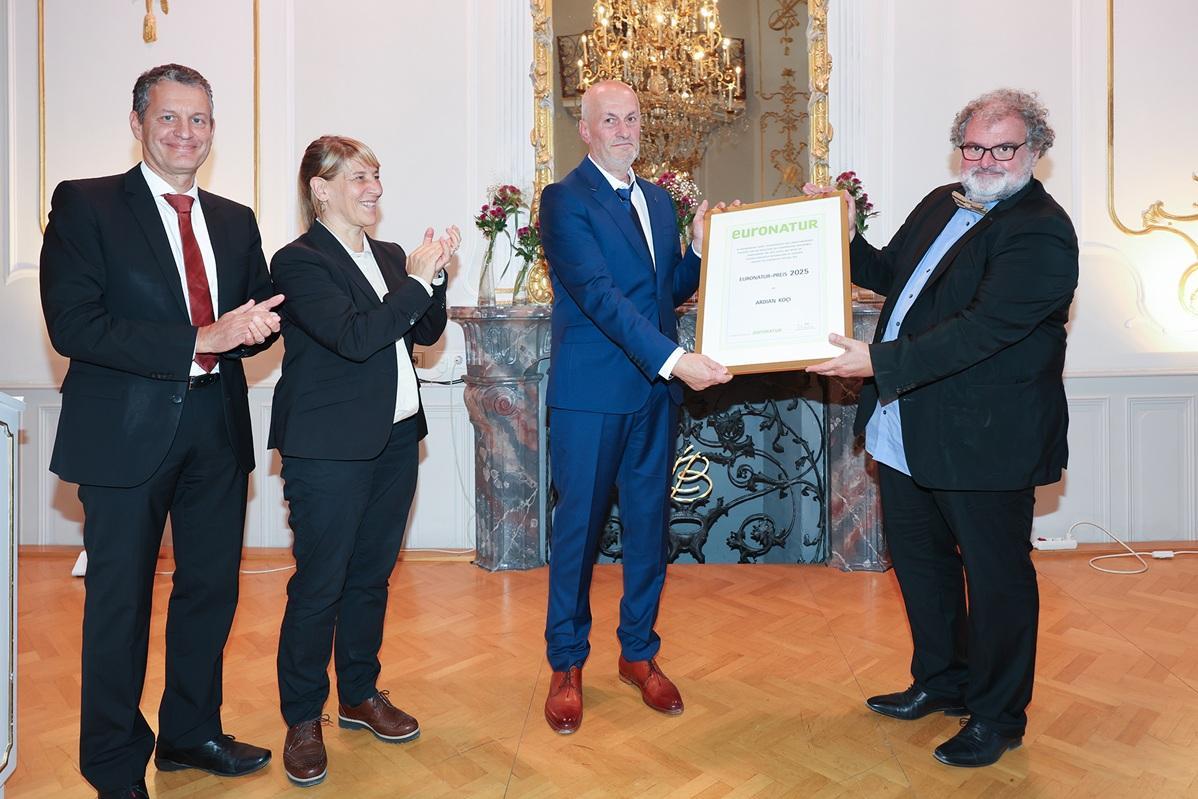 Der diesjährige EuroNatur-Preis würdigt den albanischen Naturschützer Ardian Koçi, der sich als Direktor des Nationalparks Divjaka-Karavasta mit außergewöhnlichem Engagement für den Schutz dieses bedeutenden Gebiets eingesetzt hat. Trotz persönlicher und beruflicher Nachteile stellte er sich mutig gegen Wilderei und großflächige Tourismusprojekte – und wurde schließlich aus dem Amt gedrängt. In seiner Laudatio stellte EuroNatur-Geschäftsführer Gabriel Schwaderer die Integrität des diesjährigen Preisträgers heraus: „Ardian Koçi hat seine Arbeit als Treuhänder für die Natur ernst genommen und hat sich für deren Schutz selbstlos eingesetzt. Seine kompromisslose, klare Haltung eckte an, sowohl auf lokaler als auch nationaler Ebene.“