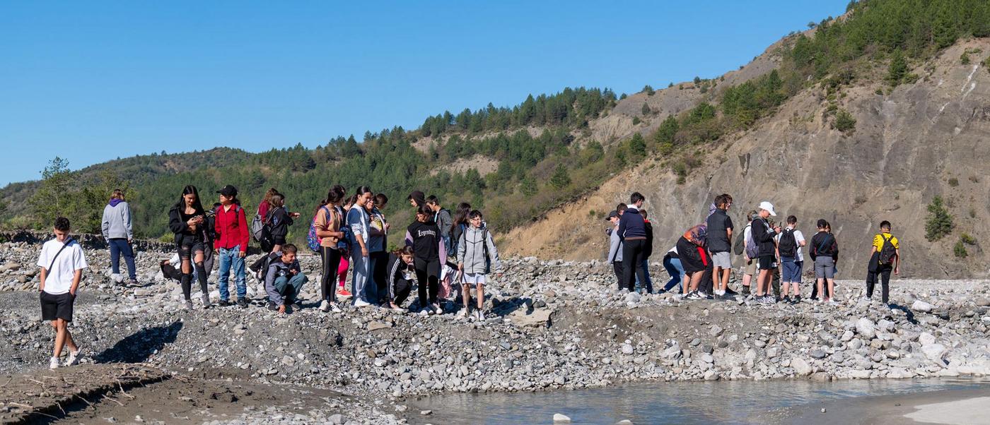 Schüler erkunden bei einer Exkursion den Sarantaporos.